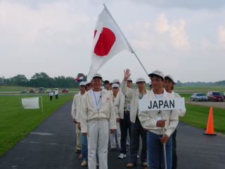 | やっと着きました、マンシーに。 インディアナポリスから車で1時間半くらい北東に走ると、大きな草原のなかに、瀟洒な2階建てのビルが目に入ってきます。 このあたり一帯がAMAの所有地でアメリカという国の広さが身にしみて実感できます。 今回の予選は800mほど離れた所に平行に位置する2箇所の飛行場で同時進行で行われます。 今日の天候は、晴れていたかと思うと、突然黒い雲の到来と同時に雷が光り、5分もたたないうちに、からっと上がってしまうという、皆さんご存知の真夏の日本のようでした。 公式練習が国別に1面、2面に別れて行われましたが、各選手とも強風に(しかも背風)悩まされました。なかなかベストな飛びとまではいかないようです。 飛行場はすべてアスファルト路面、10メートルスクウェアはカーペットを釘付けしガムテープで周囲を押さえたものです。 使用されるフラッグは言わずもがなのスターズアンドストライプス、そう星条旗です。 いかにもアメリカン。 公式練習の後、いよいよオープニングセレモニーです。 会場となった第2フライトサイトに集まったのは、27カ国から実に100名以上、選手、チームマネージャー、サポーター含め会場中央へ向けて大行進が始まりました。先頭を歩くのは、もっか2回連続世界チャンピオンの橋本学選手。 会場入場と同時に国家君が代が厳かに流れます。 続いて国名abc順にArgentina, Australliaと選手団の入場です。 陽気なイタリアチームのあとはお待たせの日本選手団です。 「Japan」のプラカードを持つのは日本チャンピオンの泉水和幸選手、日本国旗は土橋選手と小林選手が交代で務めました。 マンシー市長の挨拶、FAI JuryのHorace Hagen氏の挨拶に続き、FAIの日本選手団の阿部団長から橋本選手の優勝トロフィーが返還され、一大セレモニーは幕を閉じました。 堅苦しいセレモニーの後は、場所を移しウェルカムバーベキューの始まりです。もはや空腹を通り越していた日本選手団は、アメリカンスタイルの分厚い牛肉をものともせづに食べ尽くしました。 テーブルの上をよく見ると、そこにはなんと、銀シャリのつまったお釜とマヨネーズ、しょうゆに味の素まであるじゃああーりませんか。 橋本選手のメカニックを勤める、黒川さんからの差し入れとのことです。 おかげで日本選手団はアメリカの料理を日本の味付けでおいしくいただくことが出来ました。 うーんサポーターのカガミのような黒川さんに感謝! 食事もひと段落すると、どうせ団体優勝はいただきということか、早くもやんちゃな選手団でビールかけが始まりました。 小林選手、サポーターの林君と犠牲者がどんどん増えてゆきます。 泉水選手のTシャツがぬれて張り付いているのは雨が降ったからではありません。 明日からの本番を控え選手 たちも最後のリラックスです。 明日の予選1ラウンド目は、朝7時Dwight Shilling選手の目慣らし飛行で始まります。 日本選手の活躍を期待しましょう。 |