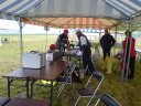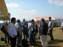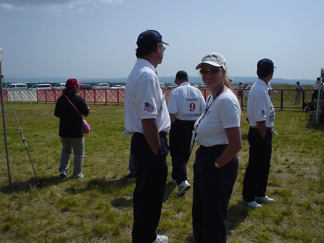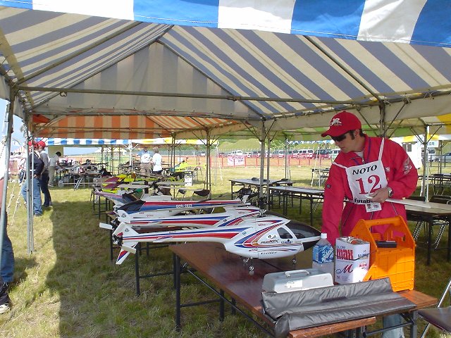 | 今回の予選ラウンドはAサイト、Bサイトを使っての2面進行で行われる。 この方式は、2001年の世界選手権(開催地 USA/インディアナ)でも採用されている。 選手は、A、Bのフライトグループに分けられており、一日ずつフライトするサイトをチェンジする。 定刻の8時30分、各サイトの本部で送信器の収容が始まった。 予選第1ラウンドが正式にスタートした。 多少肌寒く感じるものの、飛行コンディションは悪くはない。 選手にとって、左から右への風、飛行場での順風だそうだ。 定刻9時にA、Bの各サイトでフライトが開始された。 平日にもかかわらず、観戦に来られた方も多い。 九州から数名で来られた方々も。 天候の変化もなく、競技は順調に進行した。 |