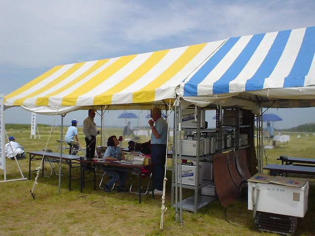 | 予選ラウンド三日目、選手は、AグループはAサイトに、BグループはBサイトに、サイトをチェンジしてのフライト。(予選ラウンド第一日目と同じ配置) 得点集計上は、三日目と四日目については、Aサイトでのフライトは第3ラウンド、Bサイトでのフライトは第4ラウンドの扱いとなる。 定刻の8時30分、各サイトの本部で送信器の収容が始まった。 定刻9時にA、Bの各サイトでフライトが開始された。 天候は快晴、風は穏やかで飛行コンディションは良好。 高得点への期待が高まる。 観戦に来られる方もさらに多くなってきている。 中盤に入った頃、若手注目株Scot Gray選手(カナダ)が高得点を出した、やはりただ者ではないようだ。 小林選手も健闘している。 Bサイトで、橋本選手が高得点を出したとの情報で、得点ボードの前には選手、チームマネージャーが集まっている。 最終番手の注目はやはり、AサイトのYoungblood選手、そしてBサイトの国井選手。 Youngblood選手のフライトが始まった。 ほとんど無風に近い条件、強い選手には天候も味方するのか。 好条件の中、さすがにポイントを押さえた演技が続く。 動演技は、彼独特のフライトの雰囲気、速度を抑え、両側のターンもPターンで行う。 練習フライトのようだ。 演技はコンパクトに纏めている。 オートロで最後の着地で横に1Mほど滑らせて円の中に入れた。 それまでの経路が綺麗だった、このまま円に決まれば最高点をマークするジャッジもいたかもしれない。 経路が正確で円を外したした場合と横滑りさせてでも円に入れる場合の一瞬の選択で円を重視したのだろう。 横滑りが減点となったが、総得点でAサイトのトップ点をたたき出した。 国井選手も高得点をあげたが橋本選手に及ばず。 橋本、小林、国井の3選手はチームとしてはブチギリ状態である。 USAチームといえども、Youngblood選手が居ない状態では、Mann選手が健闘しても敵ではないよいだ。 予選ラウンド最終日に大トラブルでも無い限り、日本チームの団体優勝は近いようだ。 競技終了後、大会本部より、決勝ラウンド出場枠は13名と発表された。 ルールでは予選出場者の20%(または10名)が決勝進出である。 計算上は11名となるが、今回の場合、4カ国、10以上の選手が来日直前で自主的に棄権した経緯もある。 これを考慮して決勝枠を13名とするようチームマネージャーミーティングで提起されていたが、陪審員団の裁定で13名と決定された。 三日目終了時点の個人成績 |