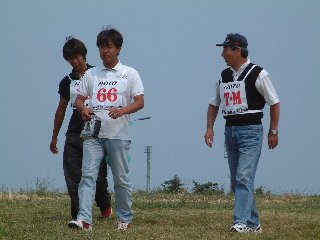 | 決勝ラウンドが始まった。 決勝ラウンド出場枠は13名、ルールでは予選出場者の20%(または10名)が決勝進出である。 計算上は11名となるが、今回の場合、4カ国、10以上の選手が来日直前で自主的に棄権した経緯もある。 これを考慮して決勝枠を13名とするようチームマネージャーミーティングで提起されていたが、陪審員団の裁定で13名と決定された。 決勝ラウンドはAサイトで行われ、10名のジャッジで採点される。 演技種目もスケジュールBと難易度も格段に高くなる。 演技数も10演技だ。 しかし、上位選手はBスケジュールを得意とする者が多い。 予選はあくまで予選、決勝で逆転を狙って真剣勝負だ。 決勝第1R 橋本、カーチスがバトルを初めから高得点をたたき出す。 カナダのスコット・グレイも予想通り実力を見せ始めた。 得点発表ボードの前には選手が取り巻いている。 集計本部にカーチスが近づいてきた。 彼のジャッジ得点集計表はすでに渡してある。 用件を尋ねると、スコット・グレイの得点が気になるようだ。 グレイ選手は、やはりカーチスも一目置いている伸び盛りの選手だ。 最終番手で、ドイツのルディガーがフライト、上空演技でフィニッシュと同時に拍手が起こる。 世界選手権では、予選ラウンドに出場できなかったほとんどの選手が着座して観戦する。 自分たちを越えた選手を応援する。 これがマナーだ。 選手も無様なフライトは見せられない。 いい演技には静演技でも拍手が起こる。 世界選手権独特の雰囲気だ。 拍手がわき起こったルディガーがこのラウンドの最高点をマークし1000点をゲットした。 決勝第2R 一番目に小林選手がフライト、600点と、高得点でいきなり抜け出した。 世界選手権決勝選手の実力を試すかのように風は時折気まぐれに方向を変える。 小林選手がトップに立ったまま各選手の演技が進行する。 最終の橋本選手のフライトにすべての眼が注がれた。 橋本選手の、静、動とも、申し分ないフライトに拍手が起こった。 得点が発表され、630点とぶち切りトップに立った。 最終日、橋本、カーチス、小林、ルディガーのバトルは見物だろう。 |