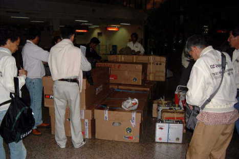 日本選手団は帰国の途につきました。 ワルシャワ市内のホテルを早朝に出発、オケンチエ空港へ 空港で、預けてある荷物(ヘリ等)の受け取りを済ませ通関