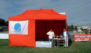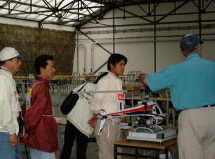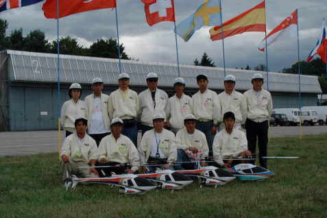 式典の後、スタジアム上空で実機によるエァーショー、最後に前回の F3Cチャンピオン橋本選手によるデモフライトがありました。 日本からチーム以外の関係者も来られました。。。。 大会のスポンサーとして、山田氏以下数名のスタッフが展示を行っていました。